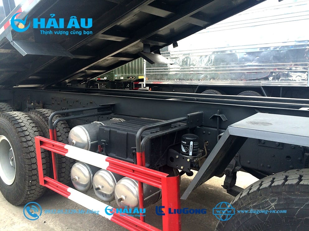 Hệ thống cầu dầu với cầu trước có tải trọng 9.5 tấn, cầu sau tải trọng 16 tấn và tỷ số truyền cầu 5.262, cùng với cầu bằng thép đúc 2*300, giúp xe tải ben Chenglong LZ3250M5DB vận hành một cách bền bỉ và ổn định trên mọi địa hình.