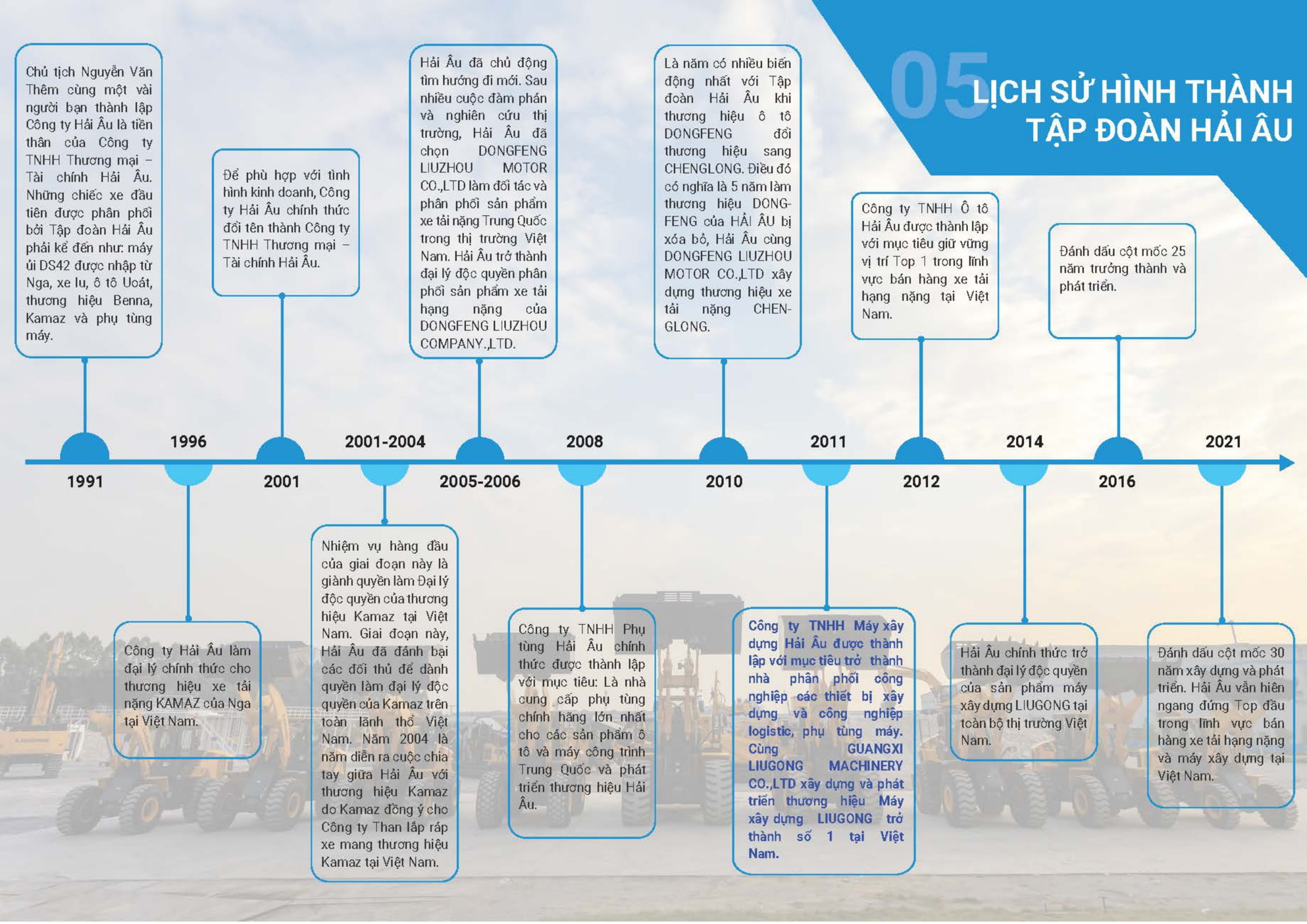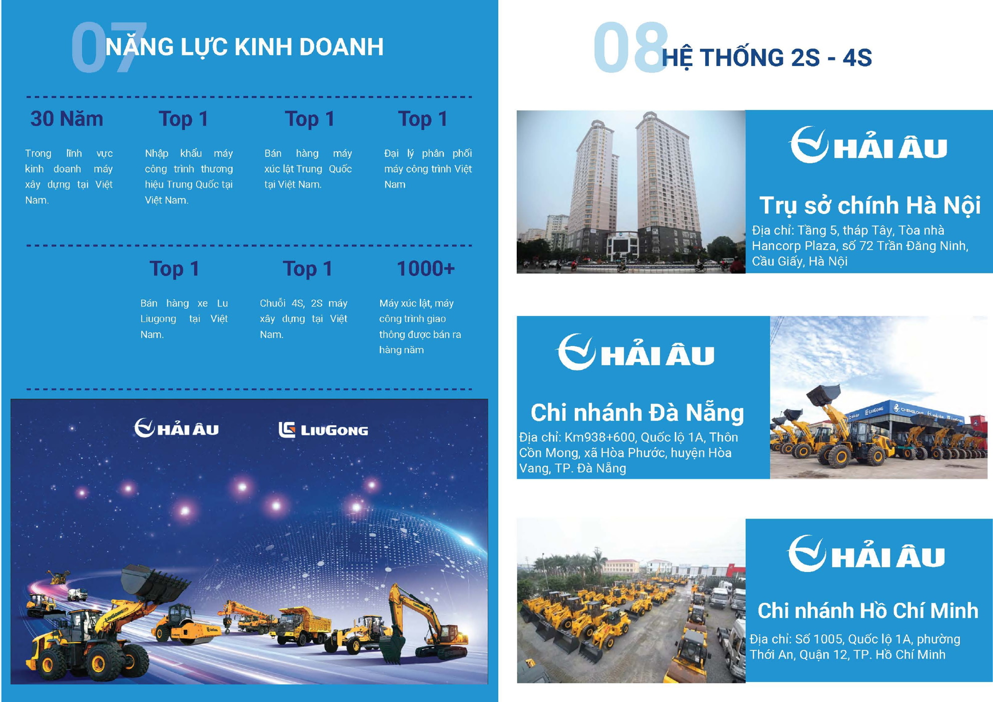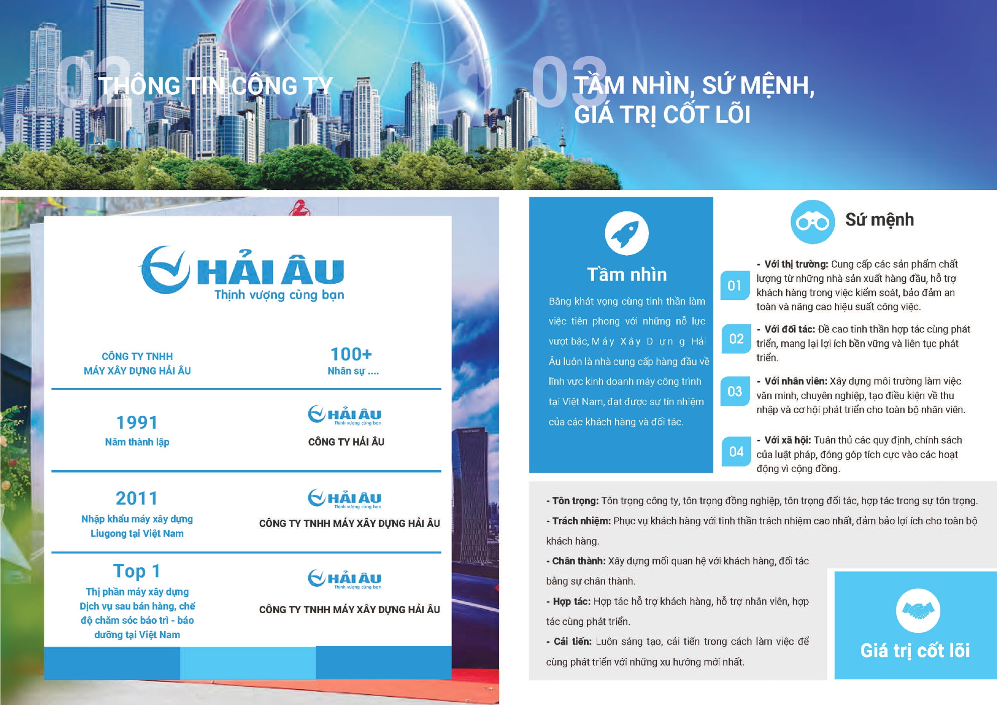 Với nền tảng vững chắc về uy tín cũng như một hệ thống phân phối rộng khắp, được tích lũy và xây đắp qua nhiều năm.Công ty Máy Xây Dựng Hải Âu đã, đang và sẽ tiếp tục khẳng định vị trí người dẫn đầu thị trường các dòng máy xây dựng Trung Quốc và các dòng máy cao cấp khác.Thực tế, công ty luôn chiếm thị phần lớn nhất và chi phối các dòng máy mới cho phân khúc thị trường máy Trung Quốc.Theo đó, số lượng và chủng loại máy được cung cấp mỗi năm qua hệ thống của chúng tôi không ngừng được gia tăng, đáp ứng những đòi hỏi khắt khe và đa dạng hơn của thị trường.