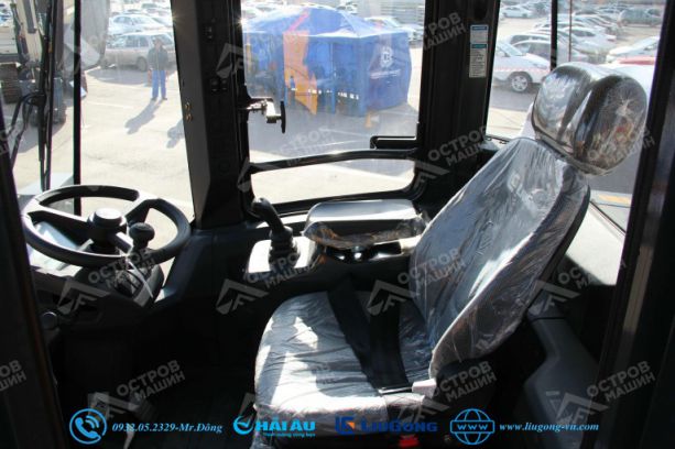 Cabin rộng rãi với tầm nhìn 309 độ là nơi lý tưởng cho người vận hành. Trang bị đầy đủ những tiện ích như điều hòa không khí, radio với USB, ghế hơi bọc vải và dây an toàn giúp tạo điều kiện làm việc thoải mái và hiệu quả.