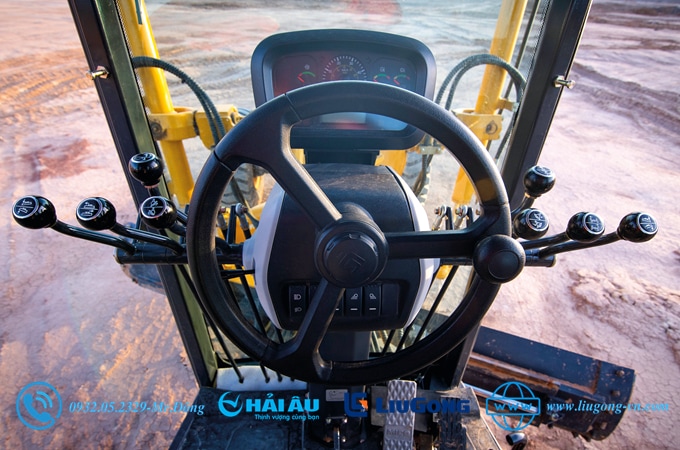 Hình ảnh nội thất máy san gạt Liugong tại kho Hải Âu Quận 12 -Tp.HCM
